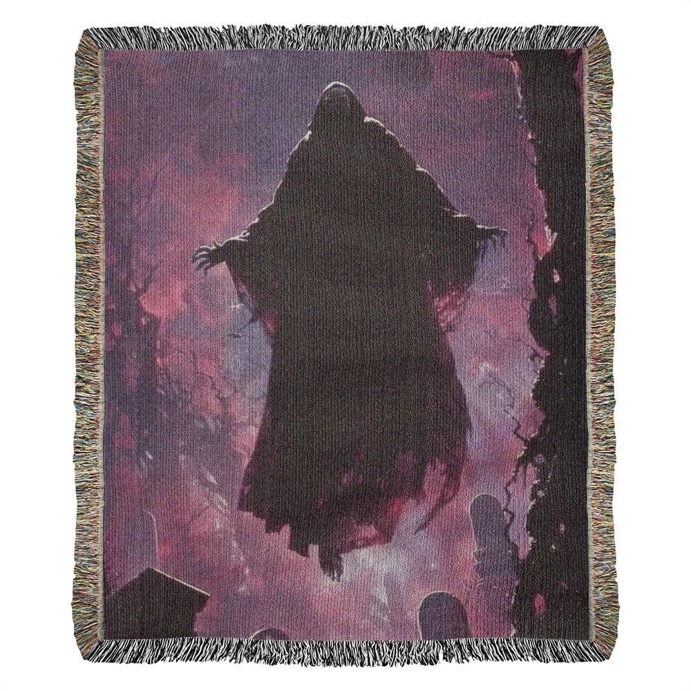 Experience the dark, moody vibe with our Heirloom Woven Blanket. Handwoven with precision, this 50x60 inch blanket features a bold, edgy design perfect for adding a mysterious touch to your space. Use it as a cozy throw, striking bedspread, or gothic-inspired wall art. Crafted for lasting comfort, this is a must-have for anyone who loves a touch of darkness in their decor. Get yours now and wrap yourself in style.